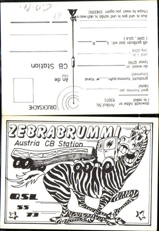 93071,QSL CB Karte Zebrabrummi Zebra LKW