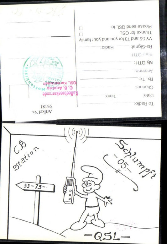 93181,QSL CB Karte Schlumpfi 05 Schlumpf Wegweiser