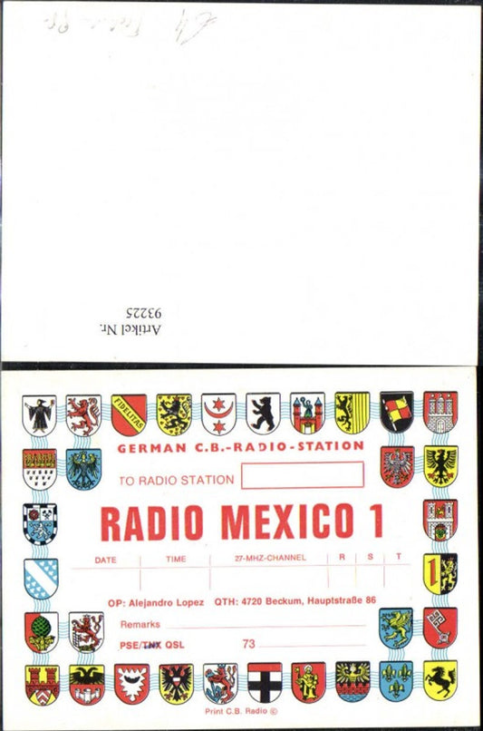 93225,QSL CB Karte Beckum Radio Mexico 1 Wappen Deutschland