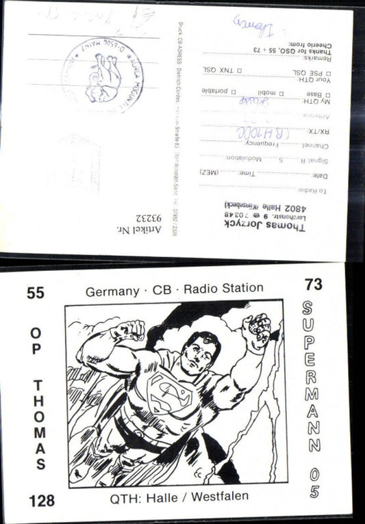 93232,QSL CB Karte Halle Westfalen Superman 05 Stempel Aurea Moguntia QSL Club of West Germany Mainz