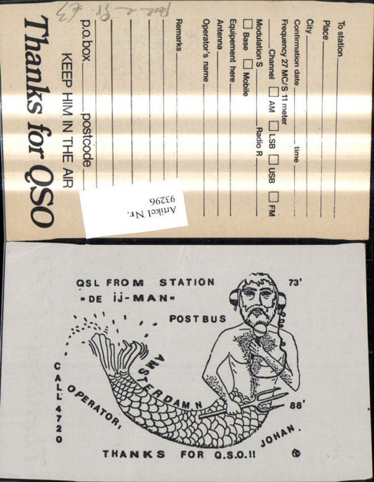 93296,QSL CB Karte Amsterdam Niederlande De Ij-Man Postbus Fischmann Speer