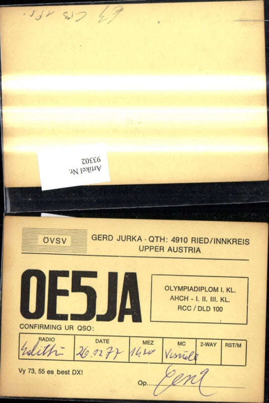 93302,QSL CB Karte Ried i. Innkreis OE5JA