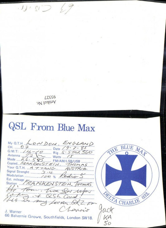 93372,QSL CB Karte Fareham Hampshire England Saxon Skippers Wikinger