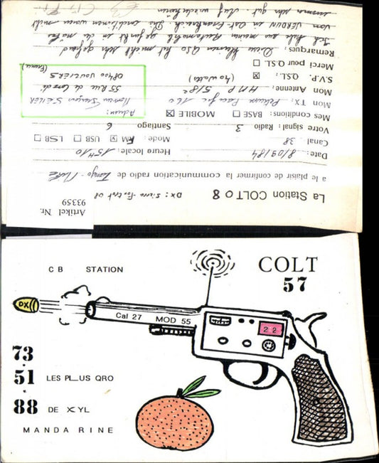 93359,QSL CB Karte Vouziers Frankreich Station Colt Mandarine Waffe