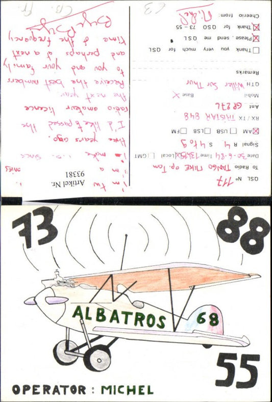 93381,QSL CB Karte Albatros Operator Michel Flugzeug