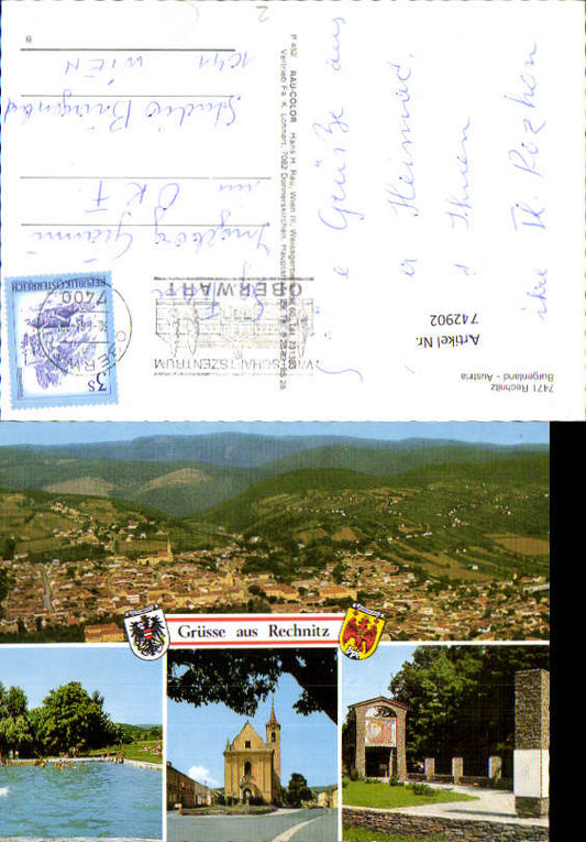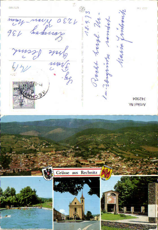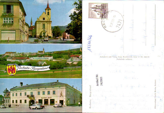 742902 Mehrbild AK Rechnitz Kirche Schwimmbad Totale