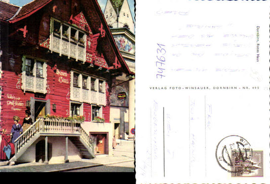747631 Dornbirn Rotes Haus mit Frauen Tracht Goldhauben