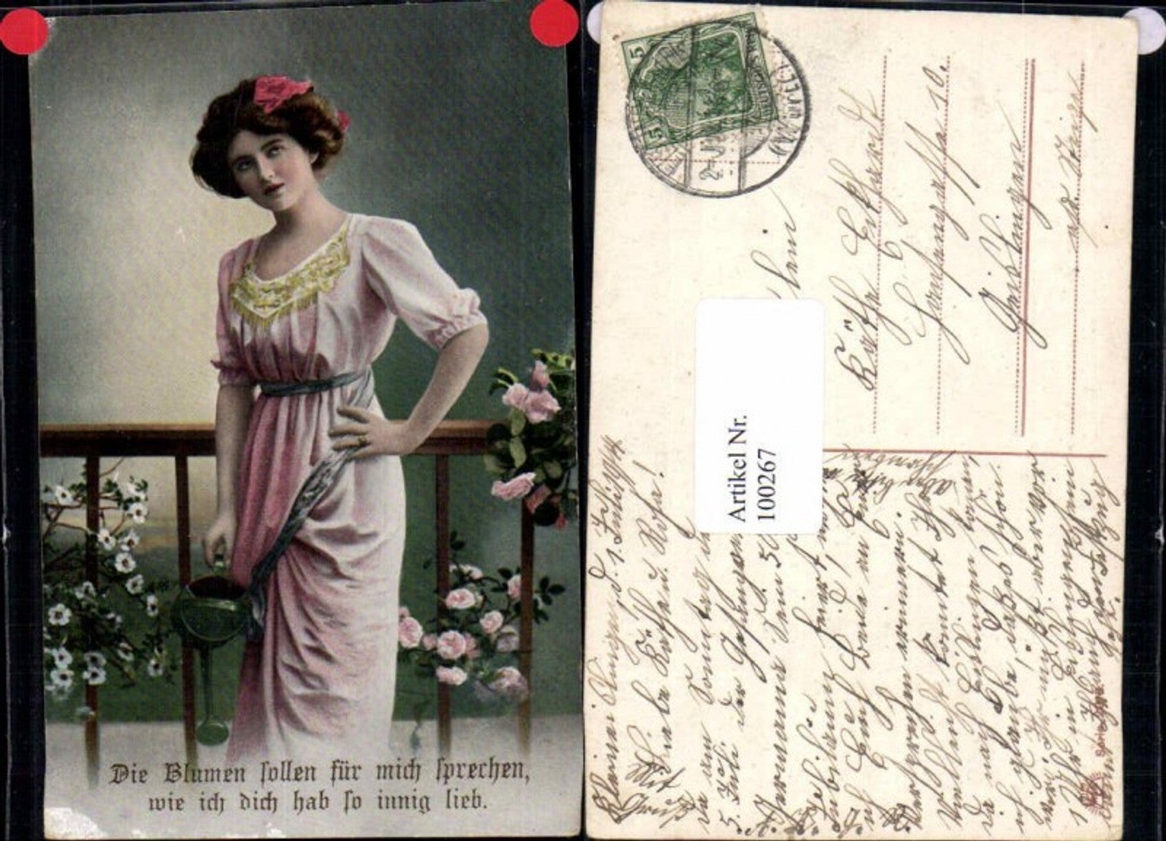 100267,Frau m. Gießkanne 1910 Fashion Edwardian Girl Can