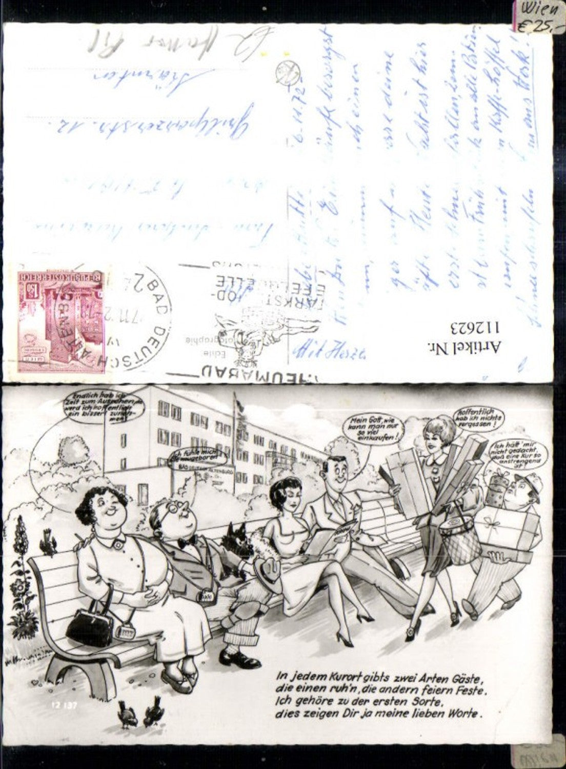112623,Künstler Ak Scherz Humor Leute a. Bank Kur Spruch Text