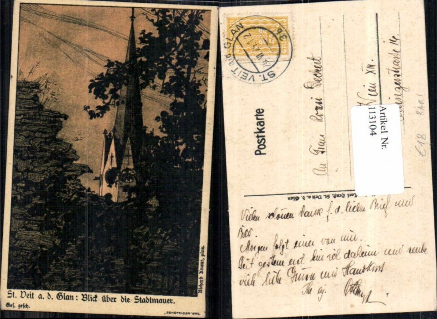 113104,Künstler Steindruck St Veit a.d. Glan Stadtmauer Richard Knaus sign.