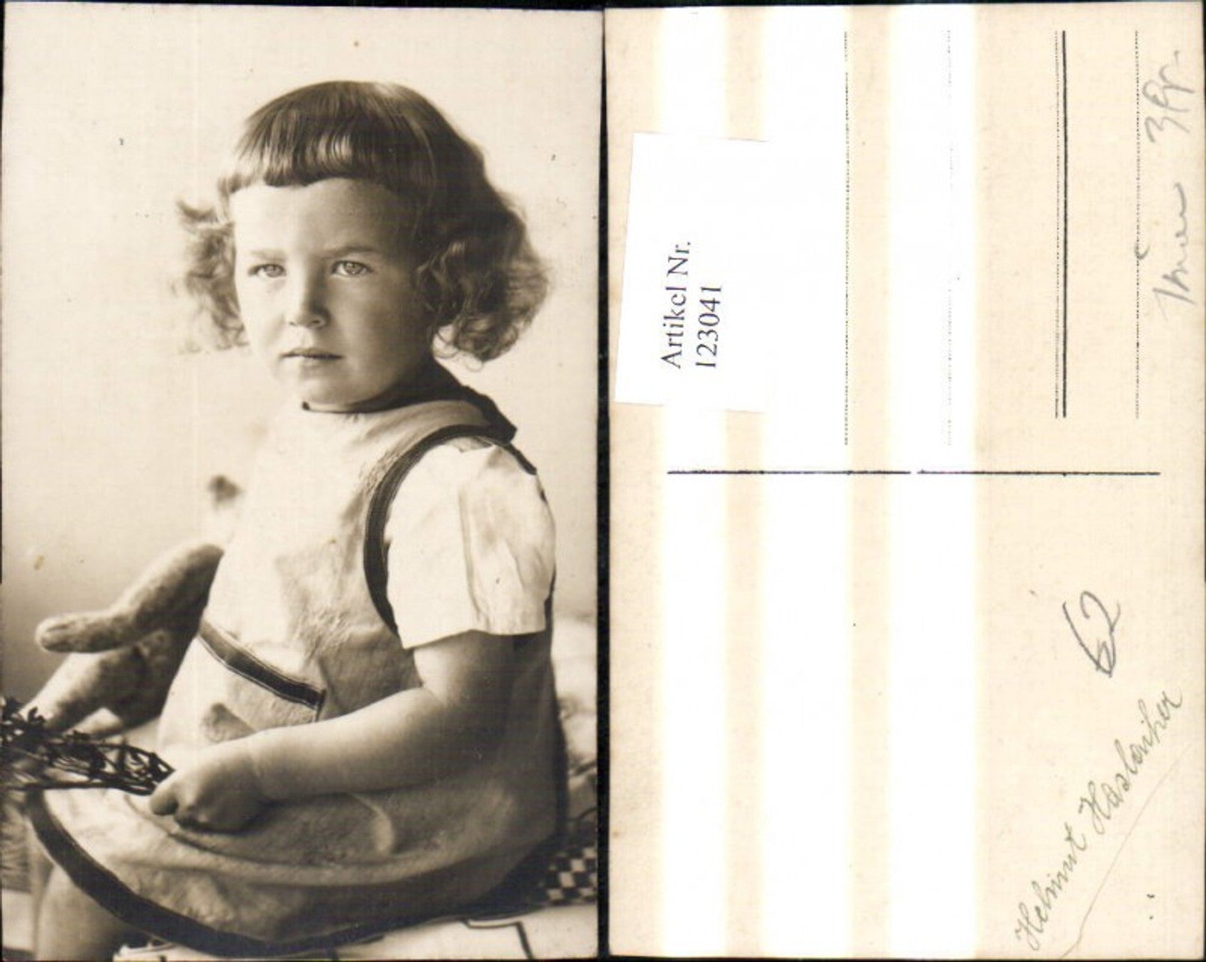 123041,Foto Ak Kind Lockenkopf Mädchen m. Plüschtier Spielzeug