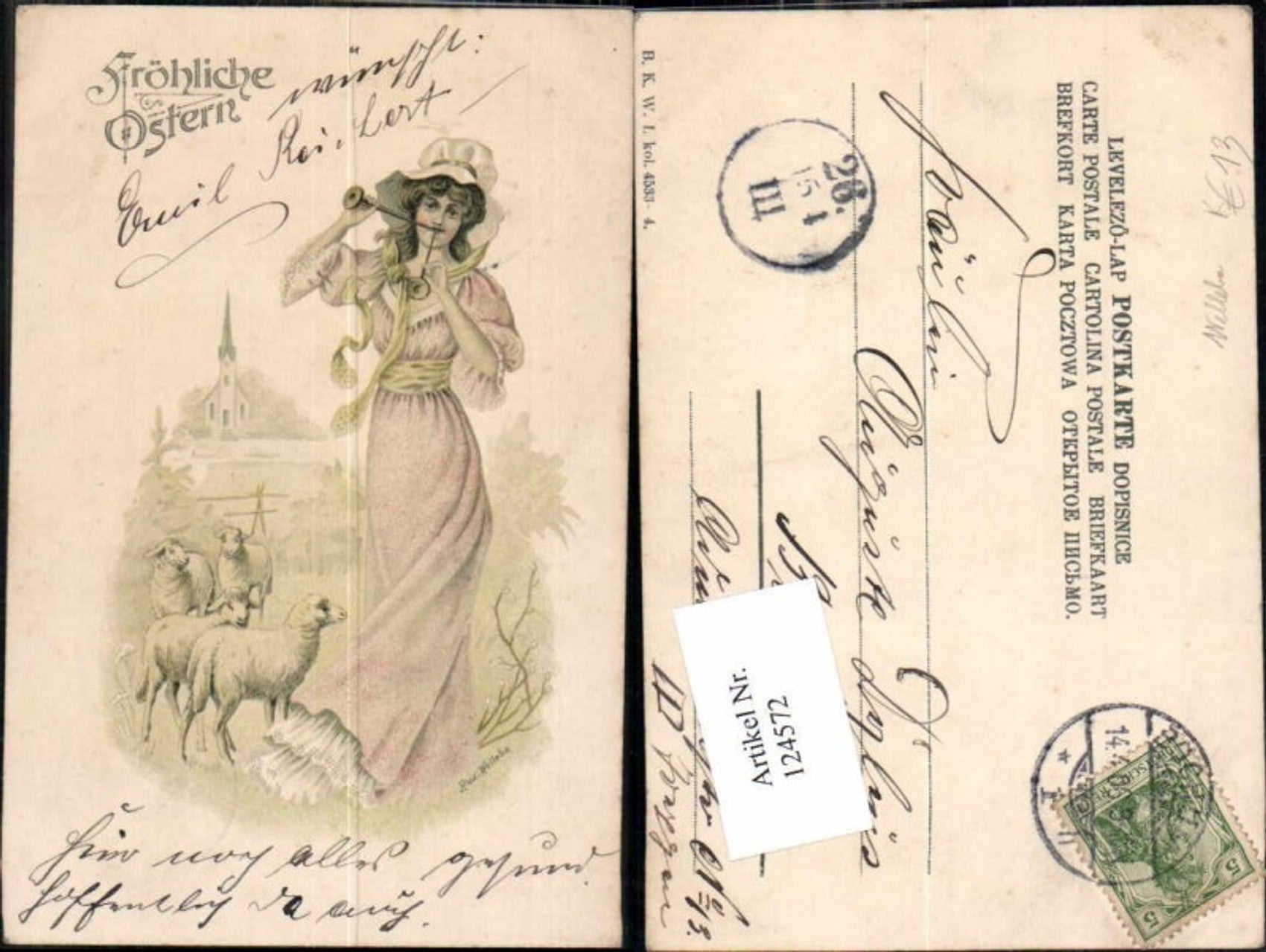 124572,Rudolf Welleba Tolle Jugendstil Litho Frau Flöte Schafe Vienne Stil Art Nouveau Ostern