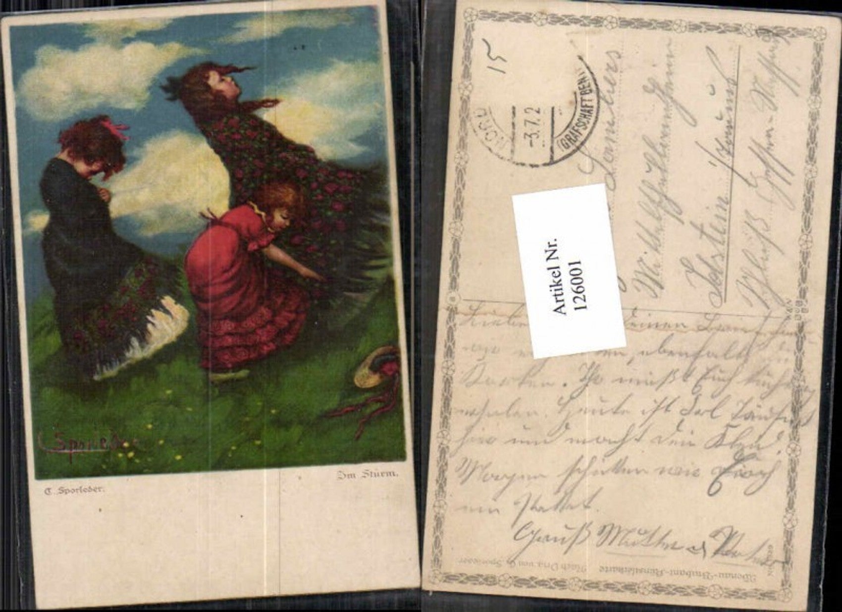 126001,C. Sporleder Im Sturm Kinder Wenau Brabant Künstlerkarte