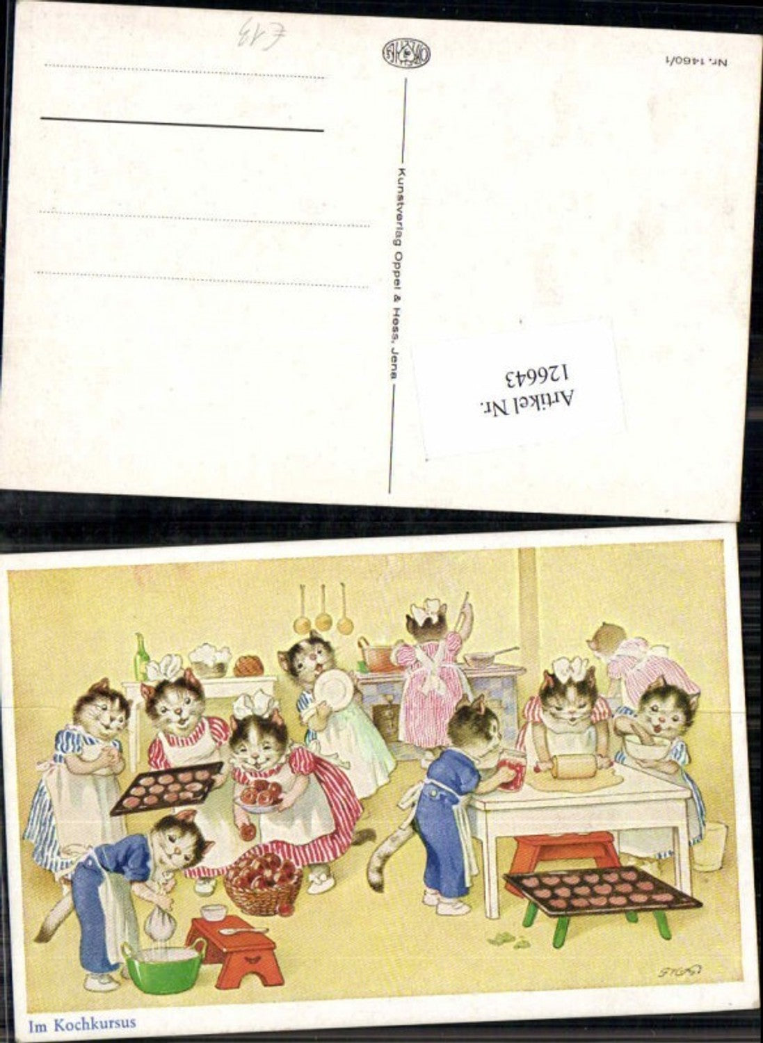 126643,Fritz Baumgarten Katzen Kochkurs vermenschlicht personifiziert pub Oppel & Hess 1460-1