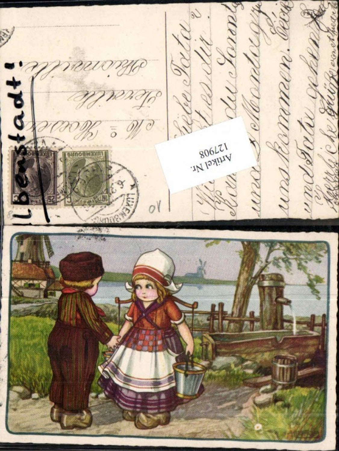 127908,A. Bertiglia Kinder Wasserträgerin Brunnen