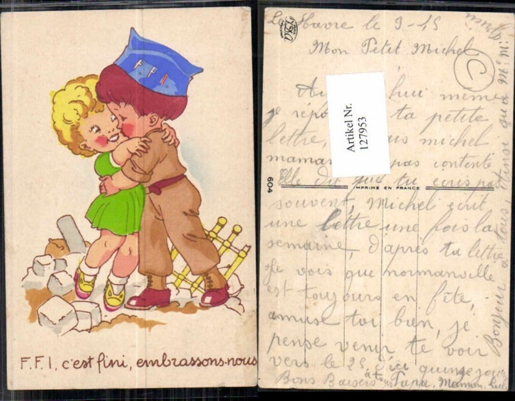 127953,Kindersoldat m. Mädchen Süsse Kinder Künstlerkarte