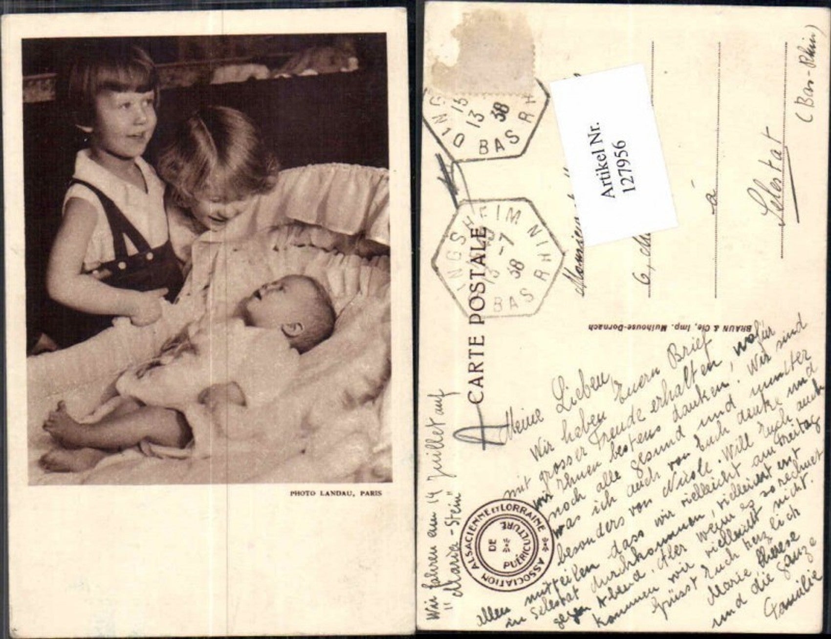 127956,Süsse Kinder Künstlerkarte baby im bett geschwister
