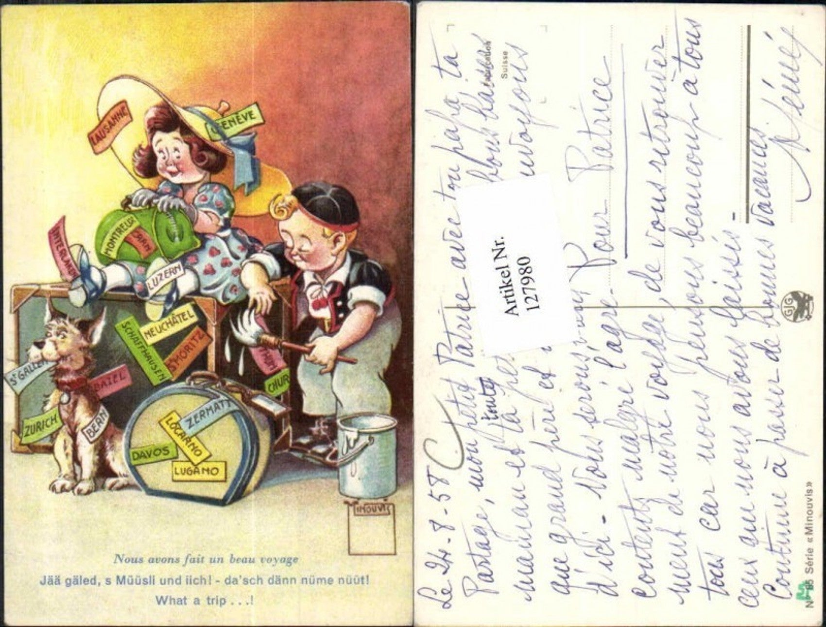 127980,Süsse Kinder Künstlerkarte Hut Hund Kinder nach der Reise