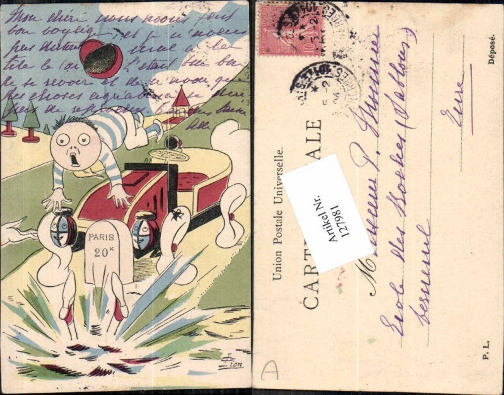 127981,G. Lion Süsse Kinder Künstlerkarte Junge m. Auto baut Unfall