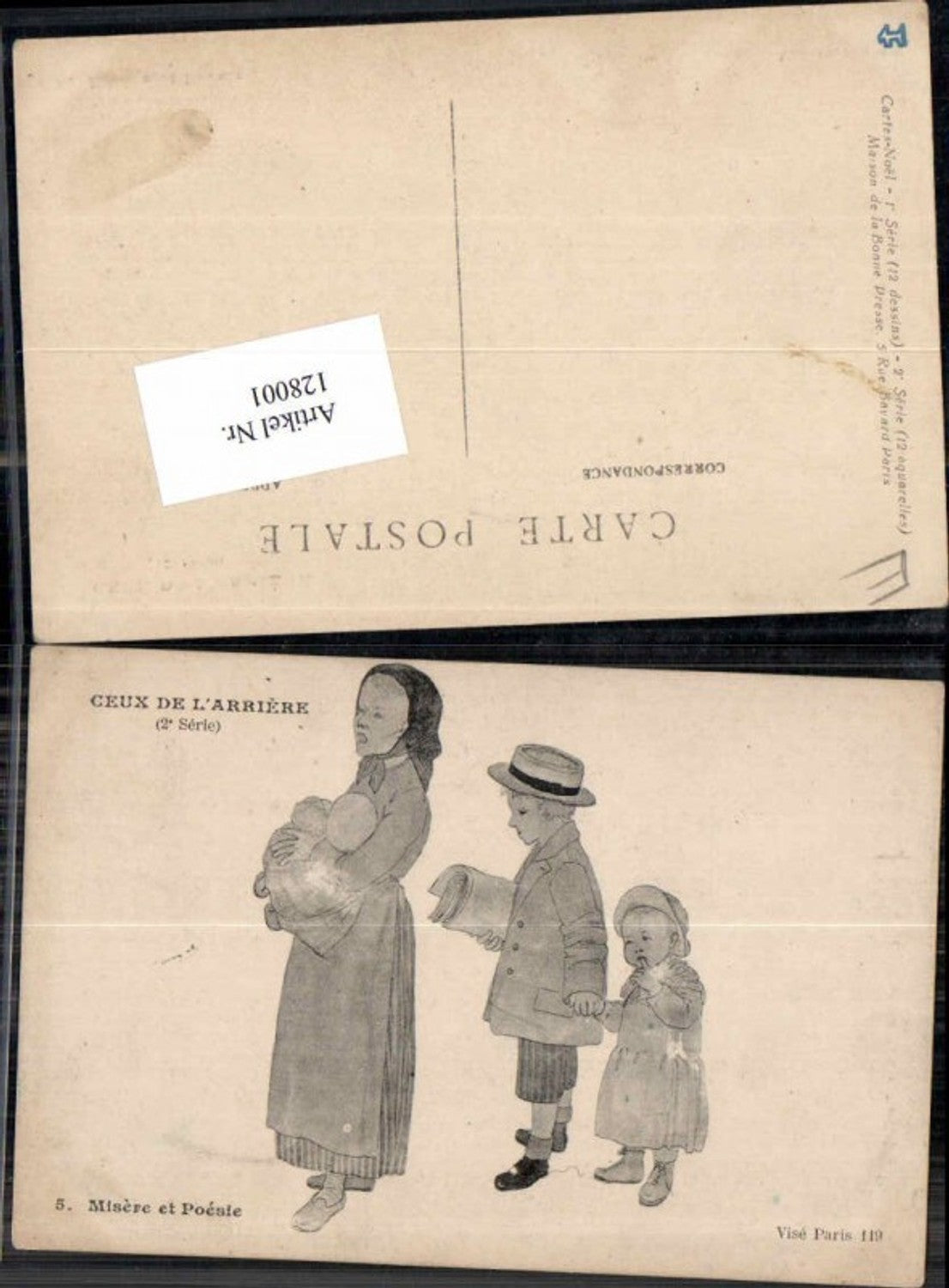 128001,Ceux de Arriere Vise paris 119 Süsse Kinder Künstlerkarte baby Hut misere et poesi