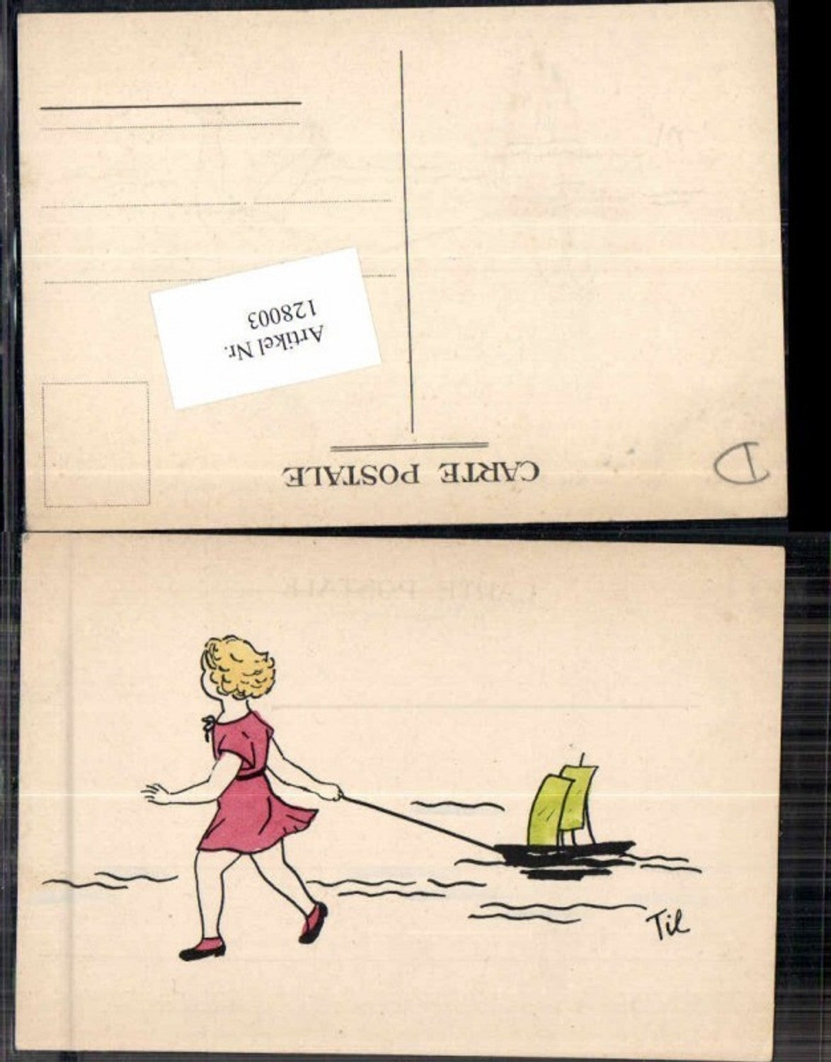 128003,Süsse Kinder Künstlerkarte Mädchen zieht Segelboot sign Til