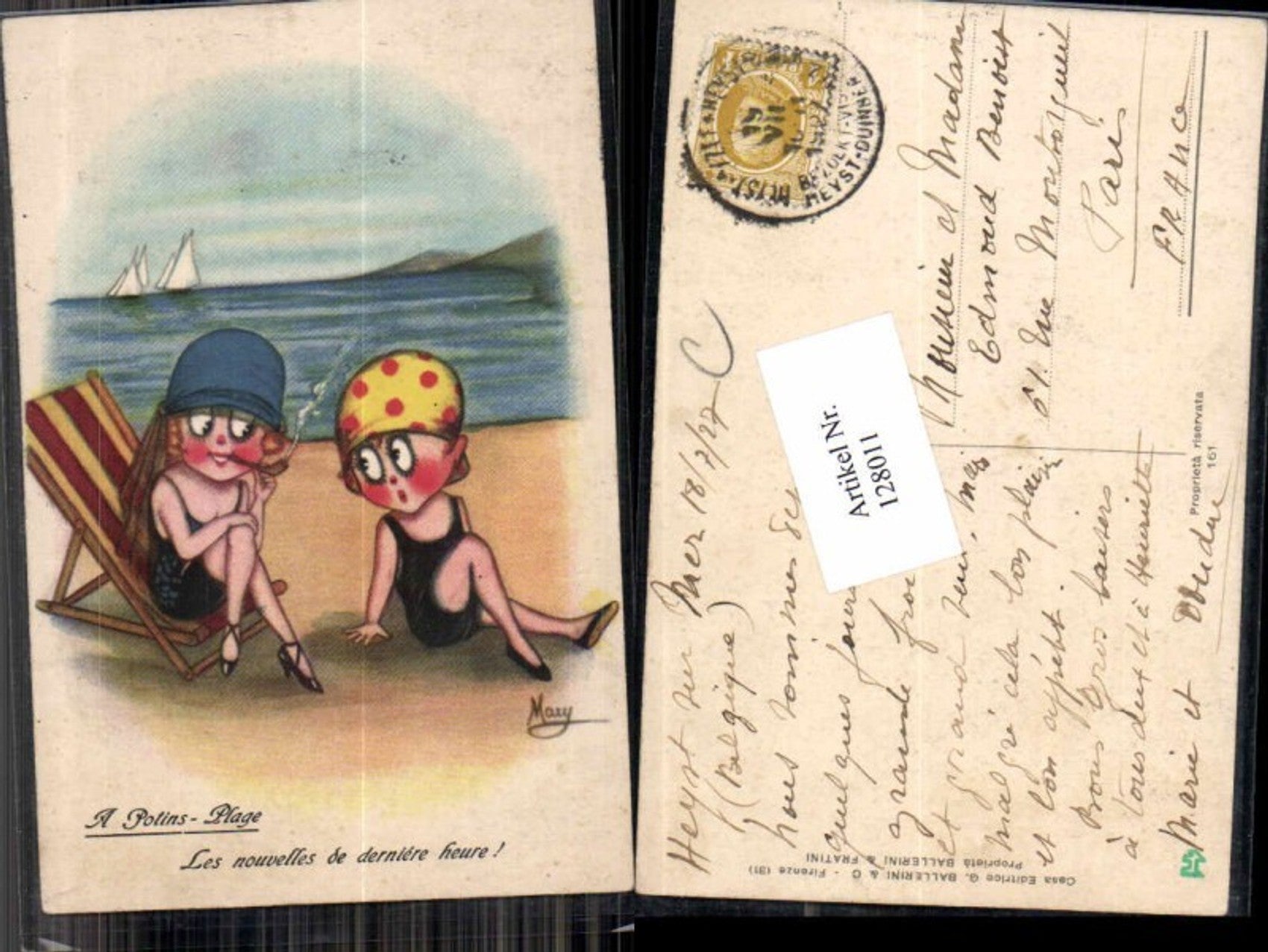 128011,Süsse Kinder Künstlerkarte Mädchen Strand raucht Zigarette sign. Mary