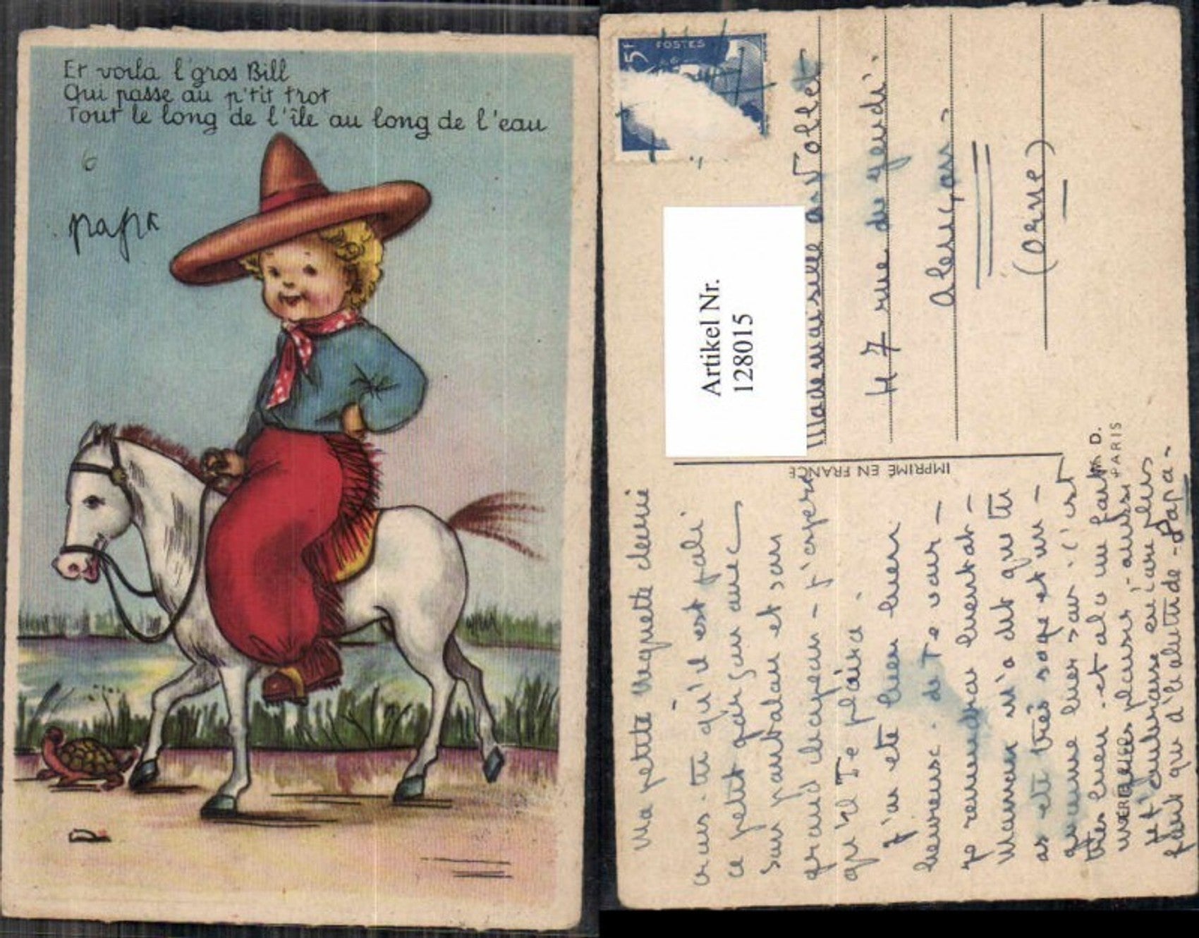 128015,Süsse Kinder Künstlerkarte Kind als Mexikaner Pferd Hut