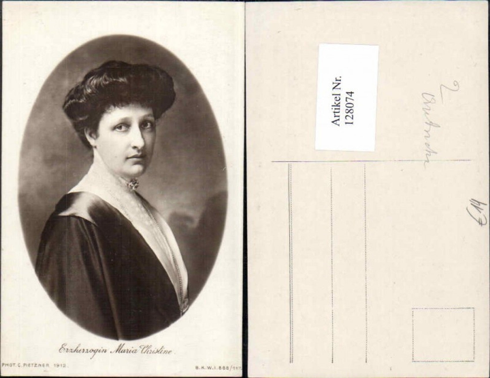 128074,Erzherzogin Maria Christine Isabella von Österreich-Teschen Habsburg Lothringen Pietzner 1912