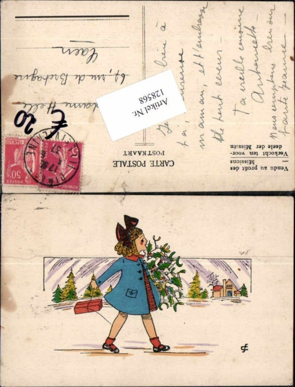 128568,Künstler AK Weihnachten Mädchen mantel Geschenke