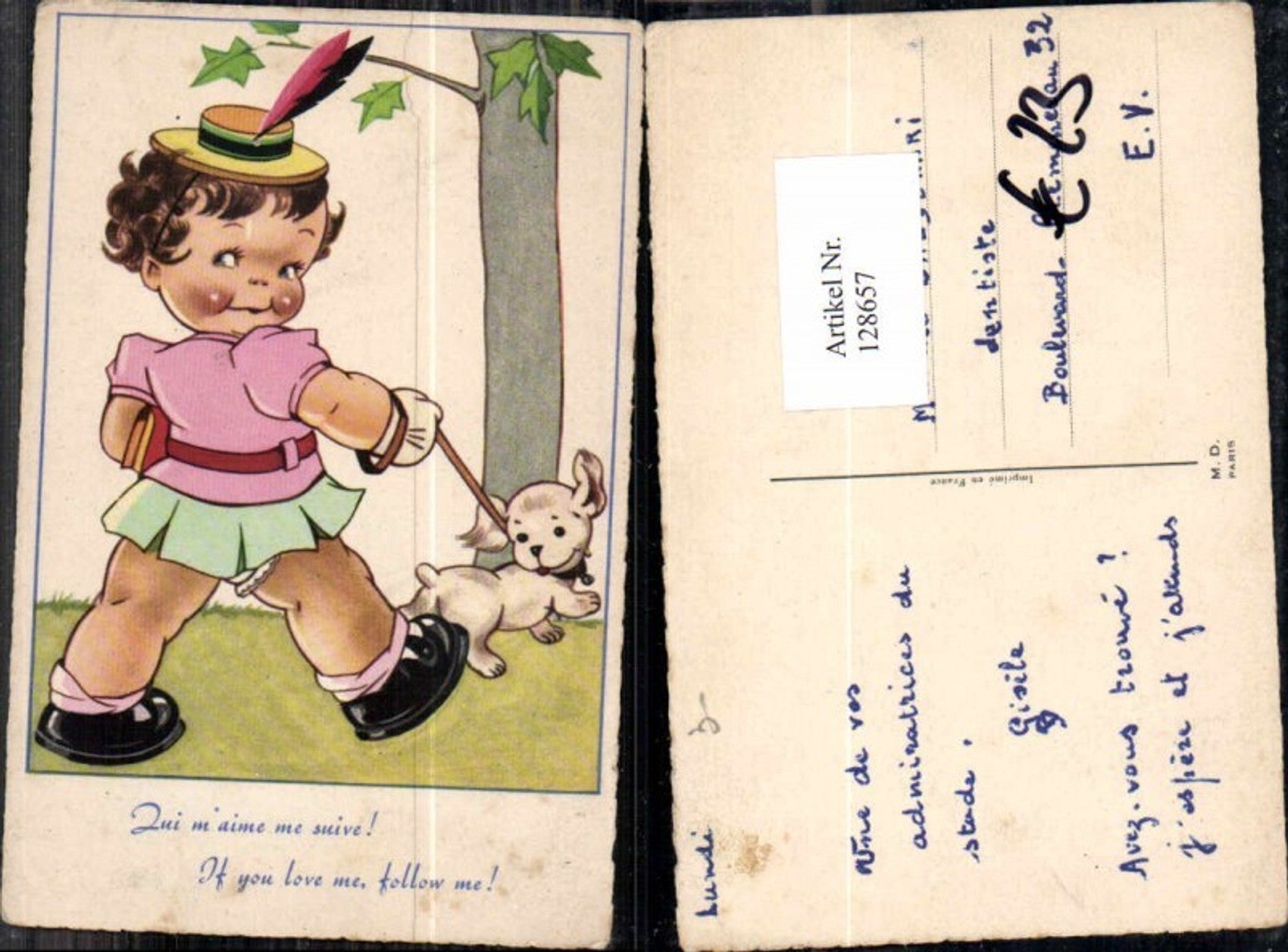 128657,Süsse Kinder AK Mädchen im wald mit Hund Hut