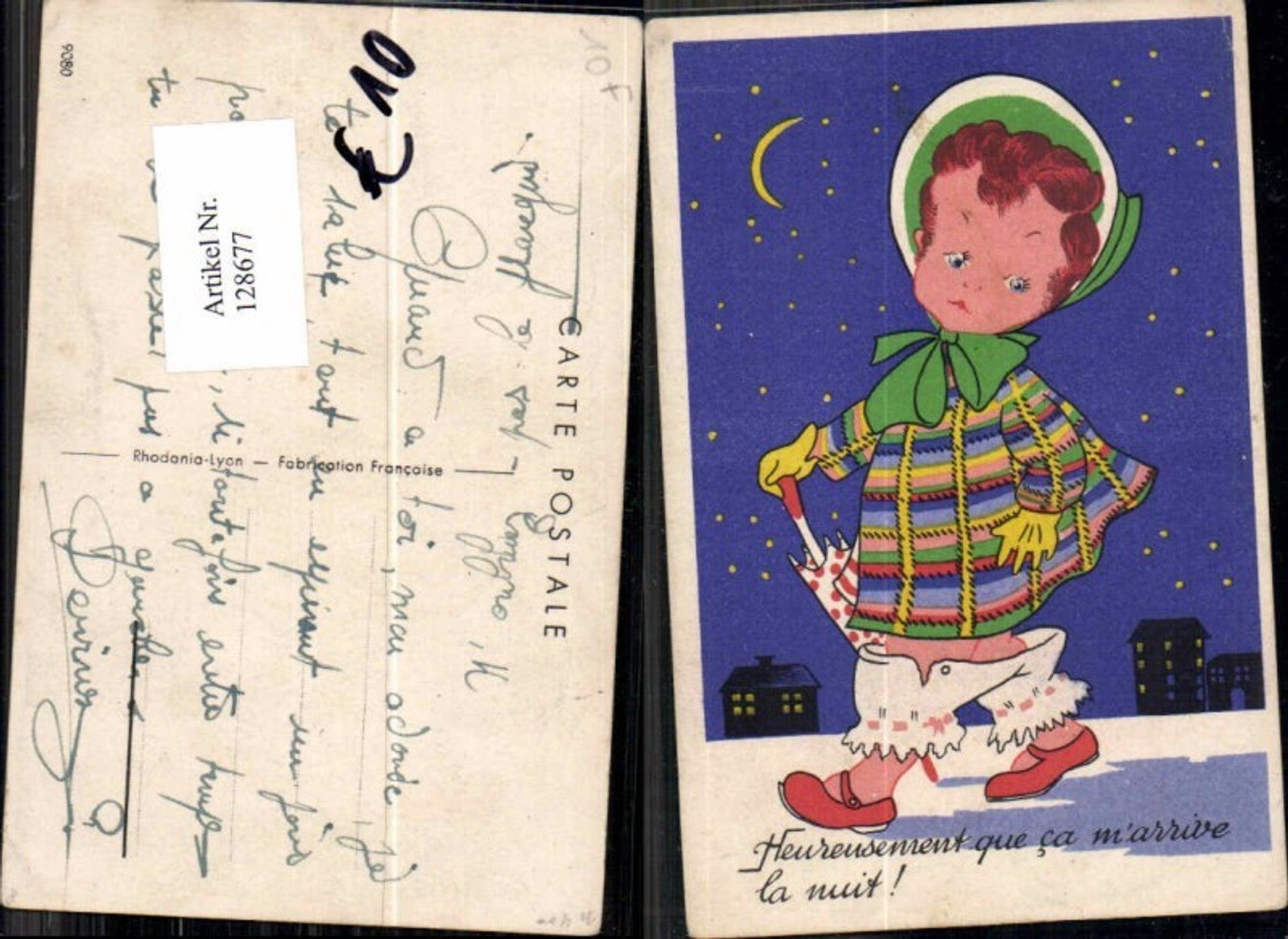 128677,Süsse AK Mädchen Kind verliert Hose Mond Mondsichel