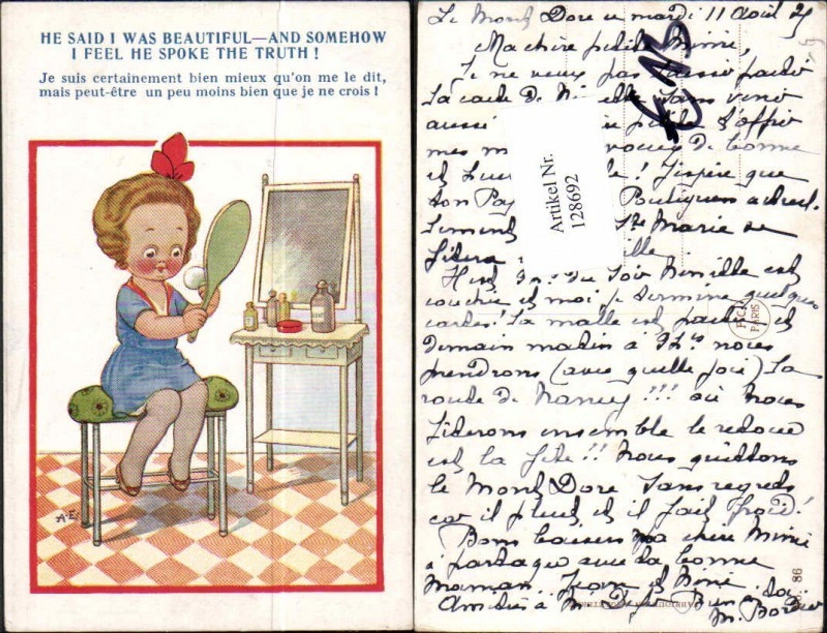 128692,Süsse Künstler AK Mädchen spielgel Schminken Maniküre
