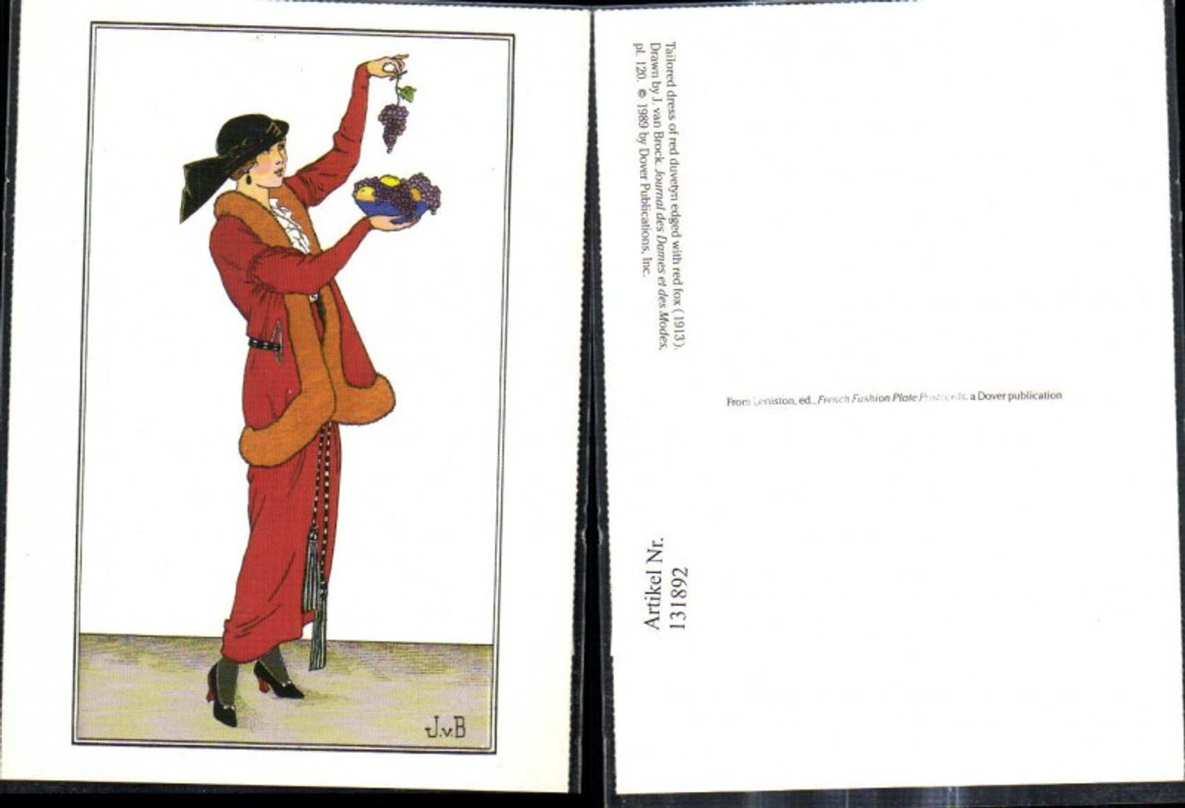 131892,Repro Jugendstil J. van Brock Mode Jacke m. Pelzkragen Hut Rock