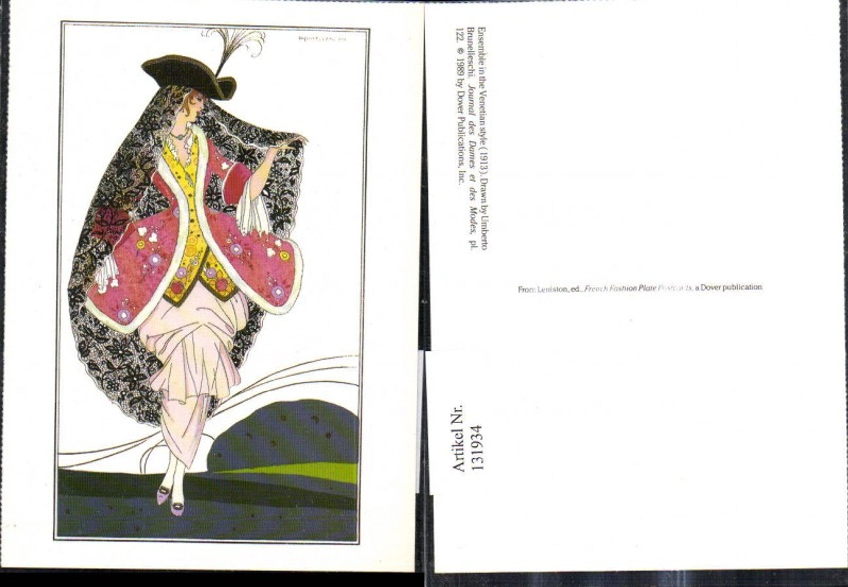 131934,Repro Jugendstil Umberto Brunelleschi Ensemble in the Venetian style 1913 Venezianisches Kleid Hut