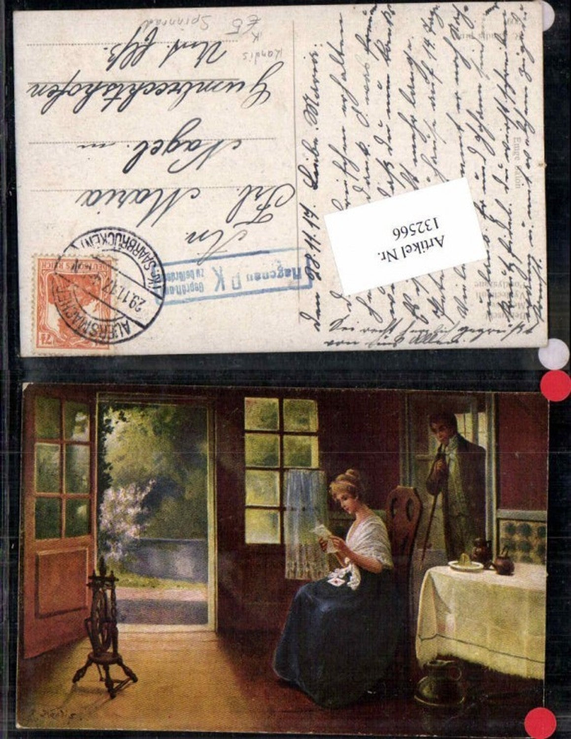132566,R. Kandis Belauscht Spinnrad Frau liest Brief