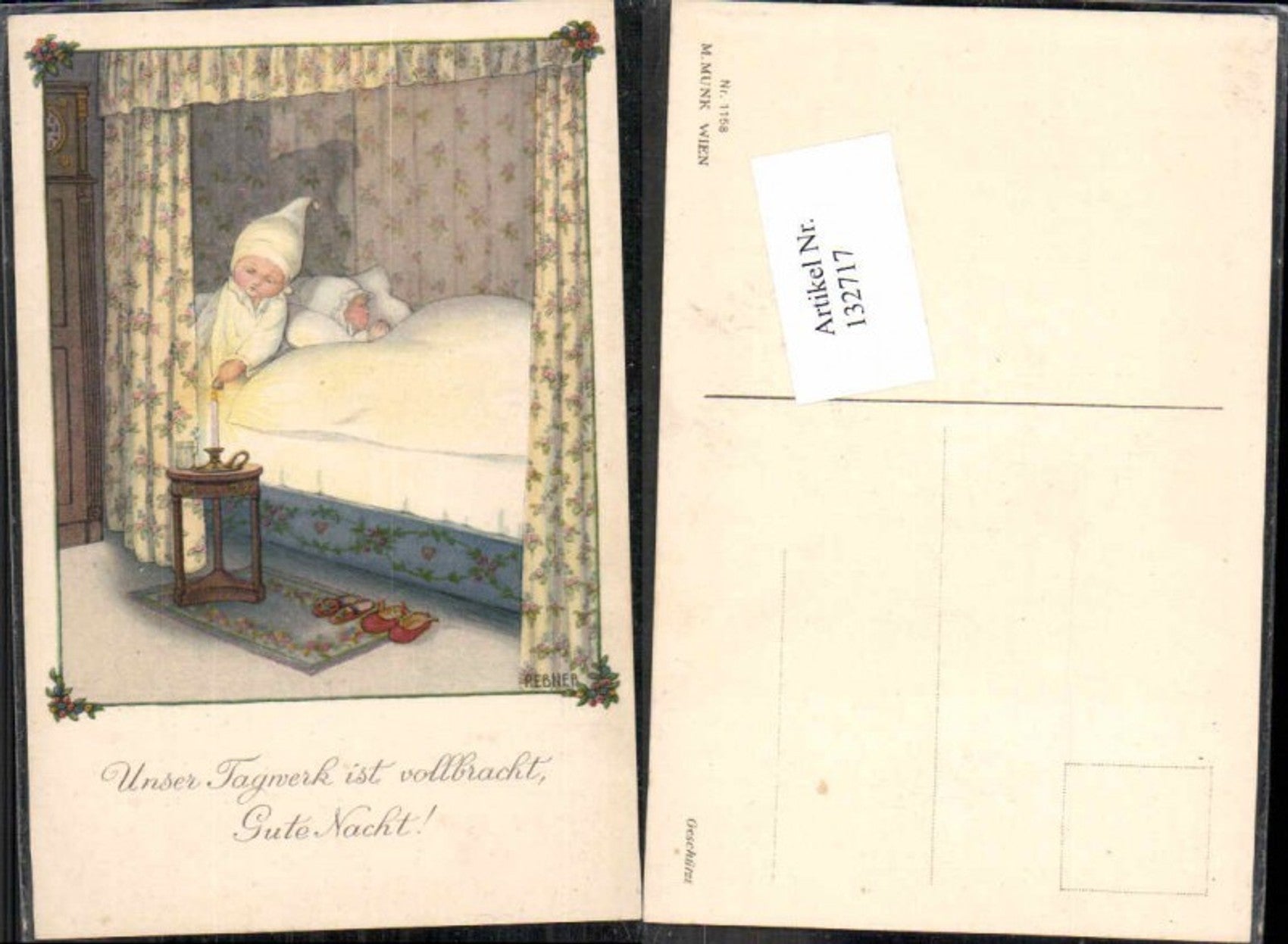 132717,M. Munk Vienne 1158 Pauli Ebner Kinder im Bett Unser Tagwerk ist vollbracht