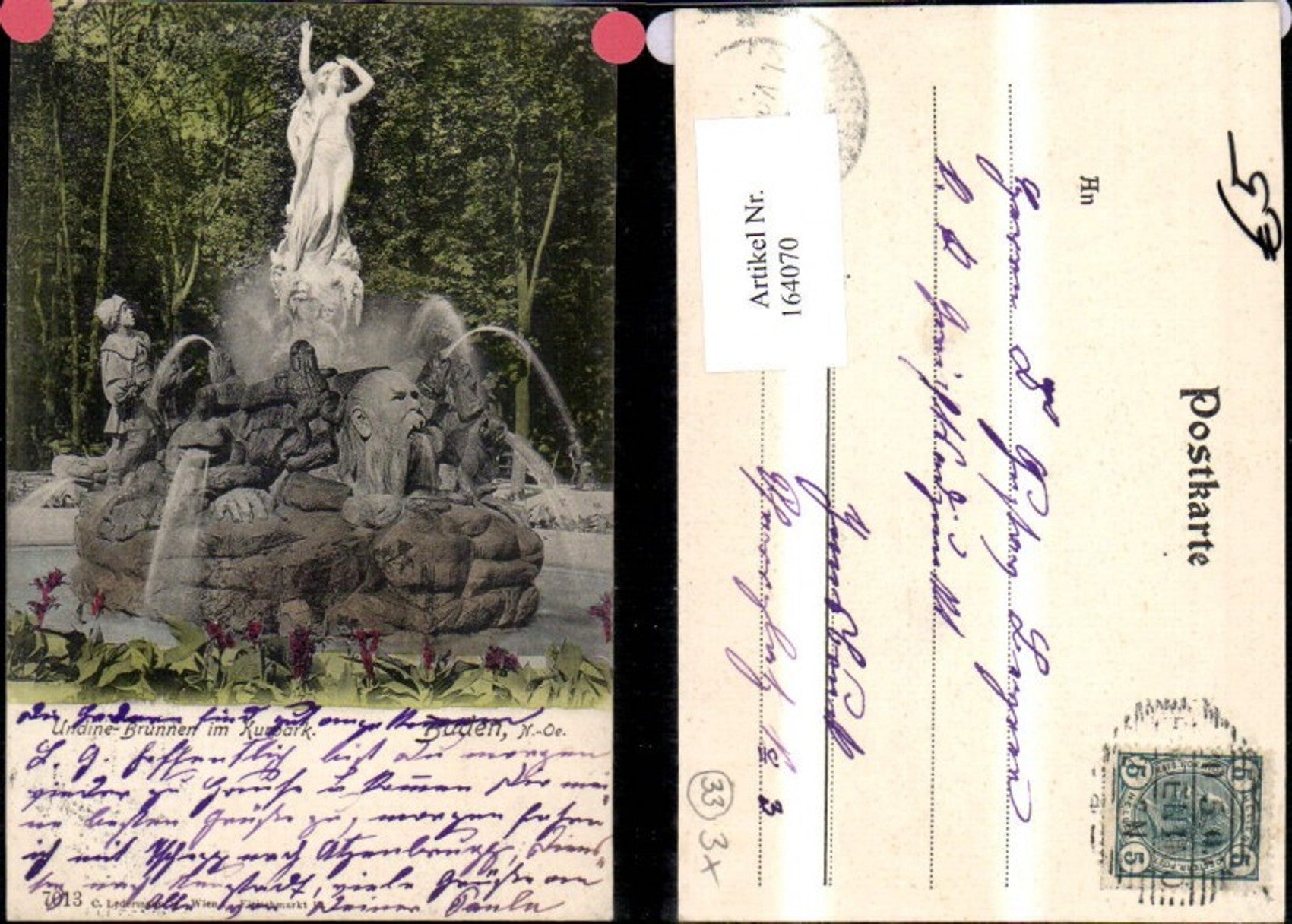 164070,Baden b. Wien Undine Brunnen i. Kurpark Springbrunnen