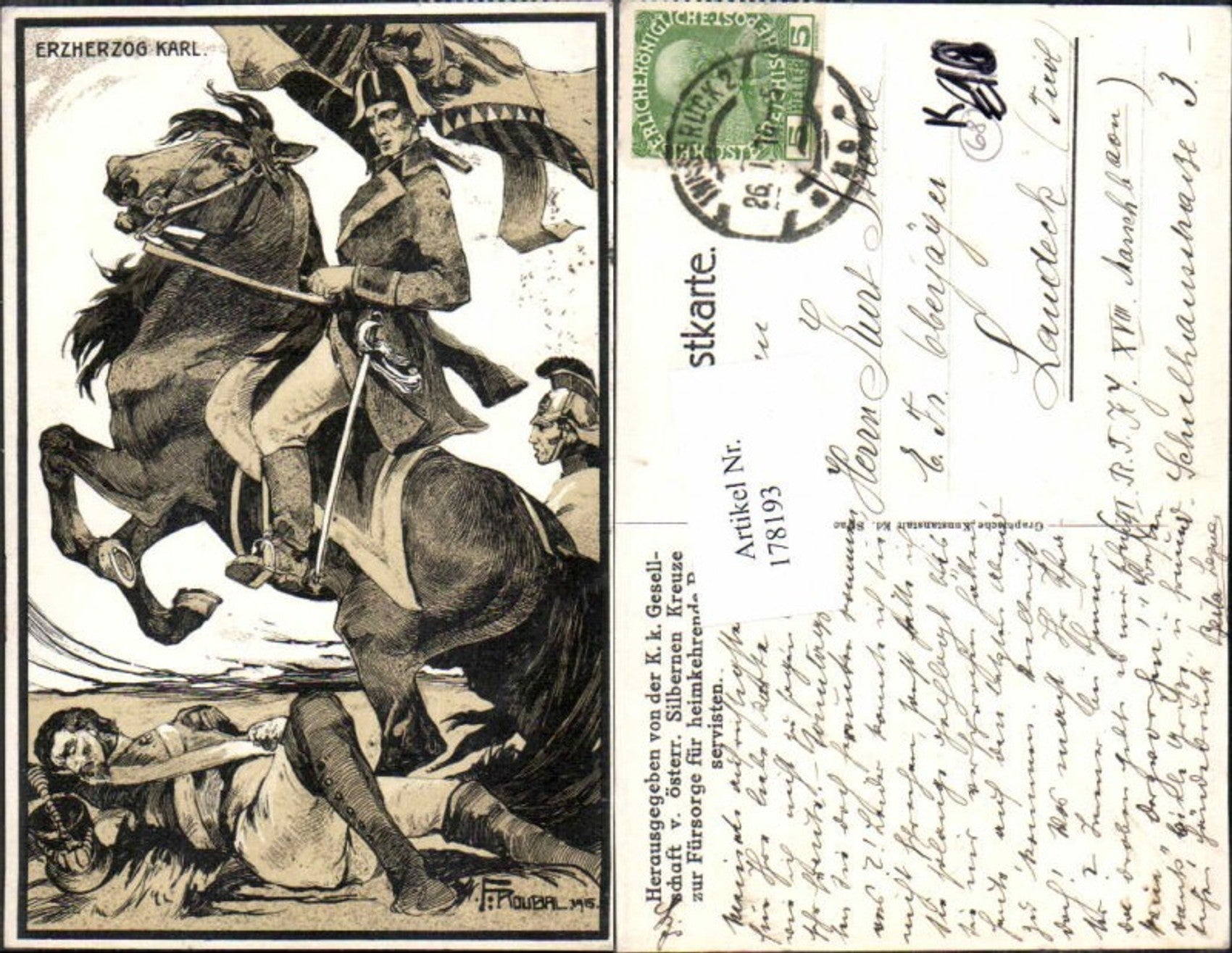 178193,Künstler AK R. Roubal Erzherzog Karl v. Österreich Pferd Schlacht Fürsorge Silbernen Kreuze