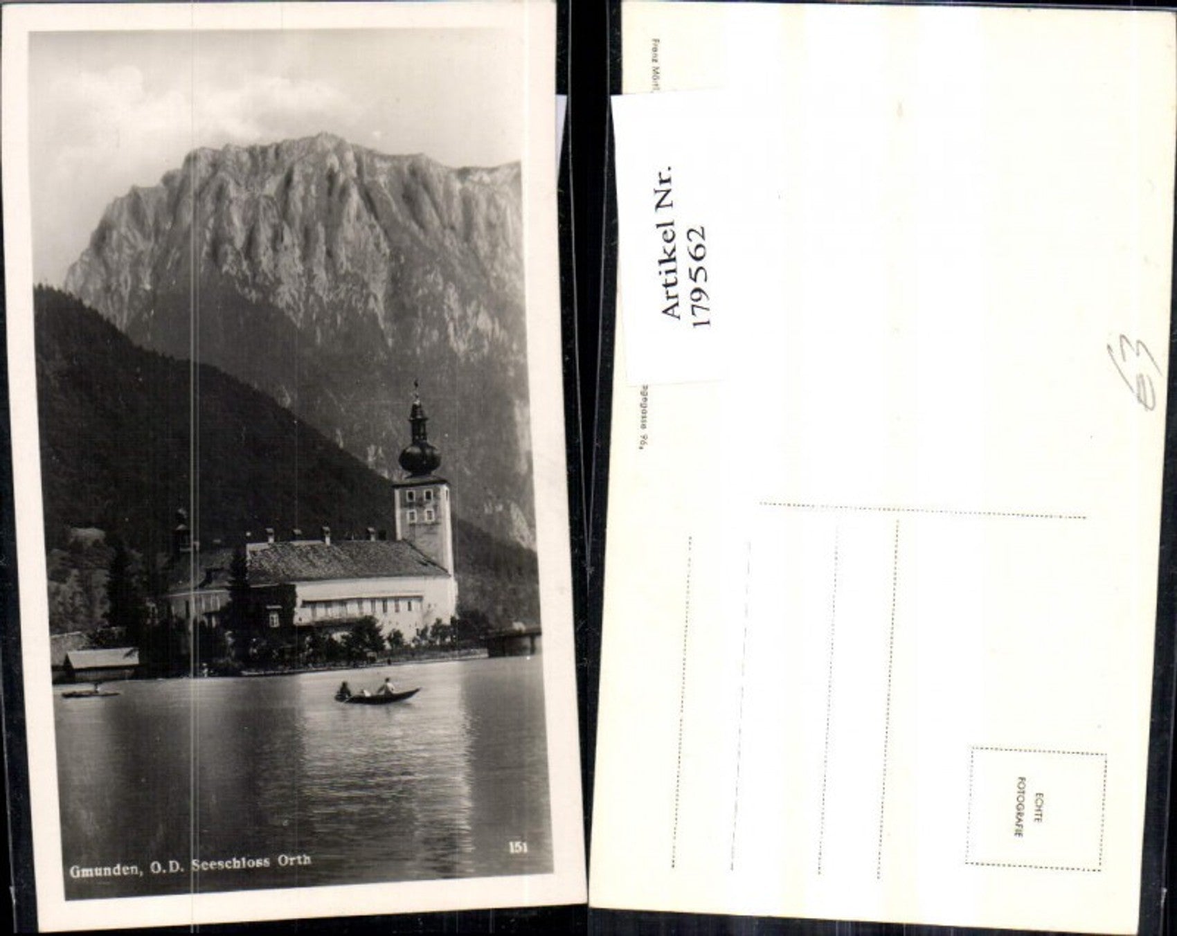 179562,Gmunden m. Schloss Ort Ruderboot Boot Seeschloss Foto Ak