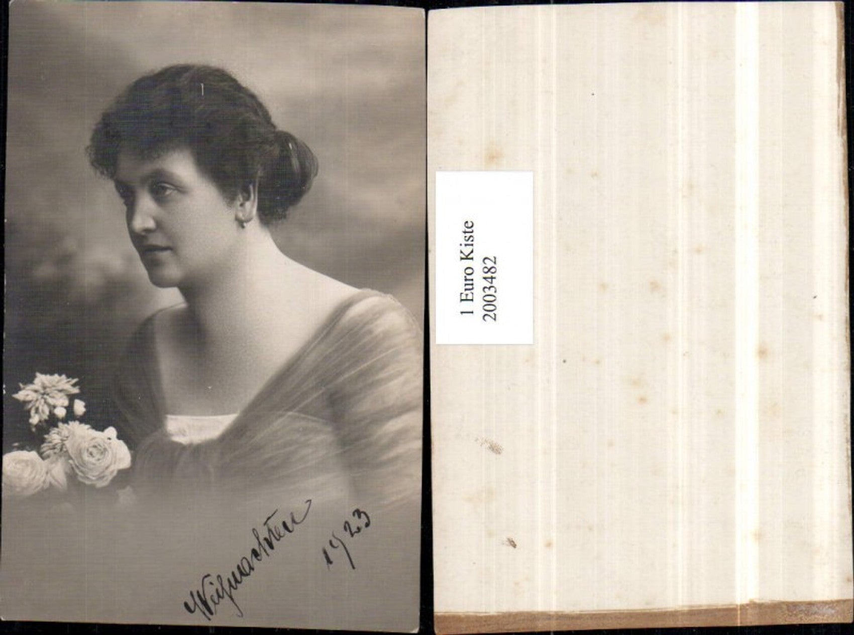 2003482,Weihnachten Frau m. Ohrringe Blumenstrauß Portrait