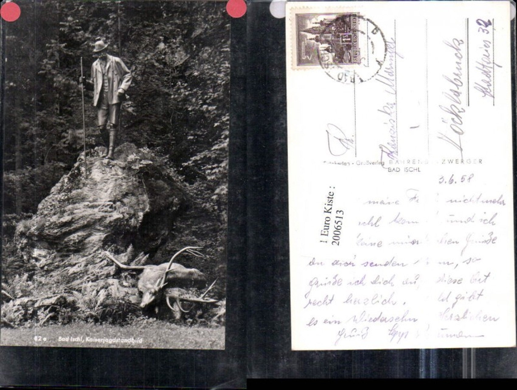 2006513,Bad Ischl Kaiserjagdstandbild Statue Jäger Hut Hirsch