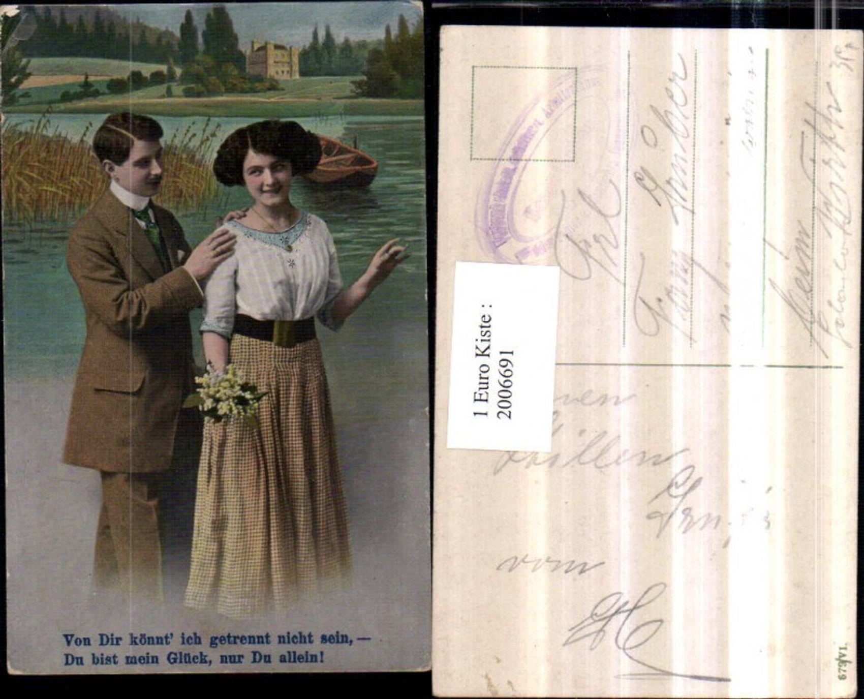 2006691,Liebe Liebespaar Mann m. Anzug Frau m. Bluse Rock Blumenstrauß Ruderboot