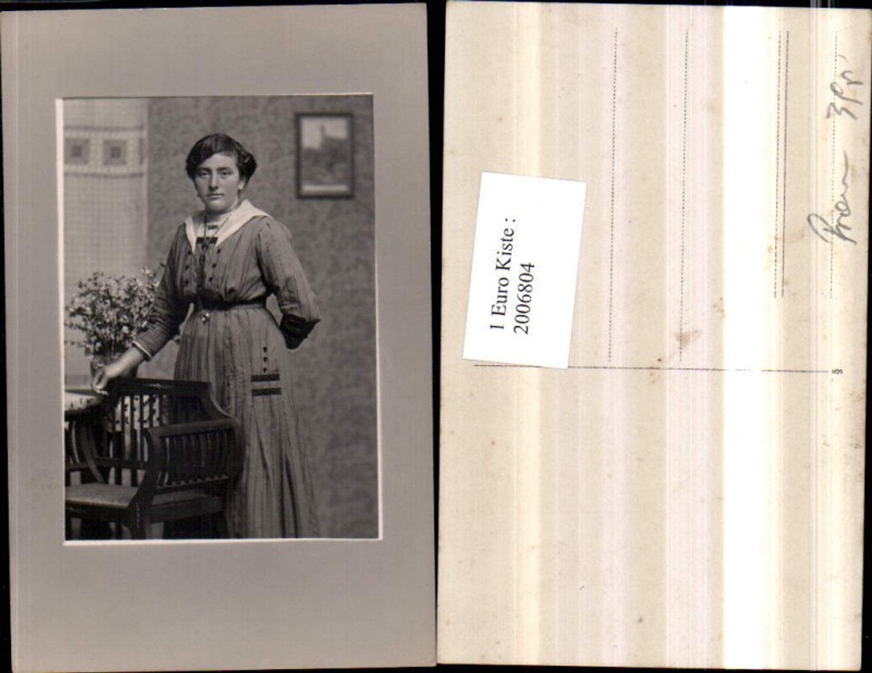 2006804,Frau m. Kleid Kette Portrait Stuhl Sessel Blumenstrauß Passepartout