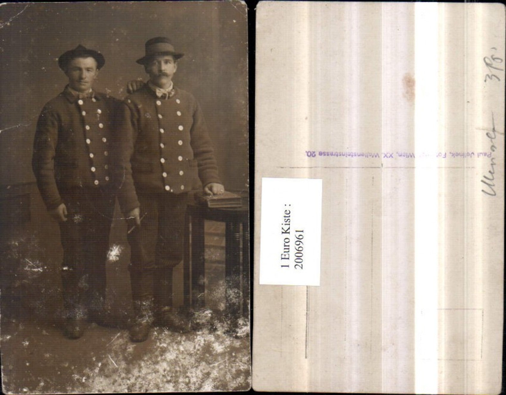 2006961,Foto AK Männer m. Mäntel Hüten Buch Füllfeder pub Foto Paul Jelinek Wien
