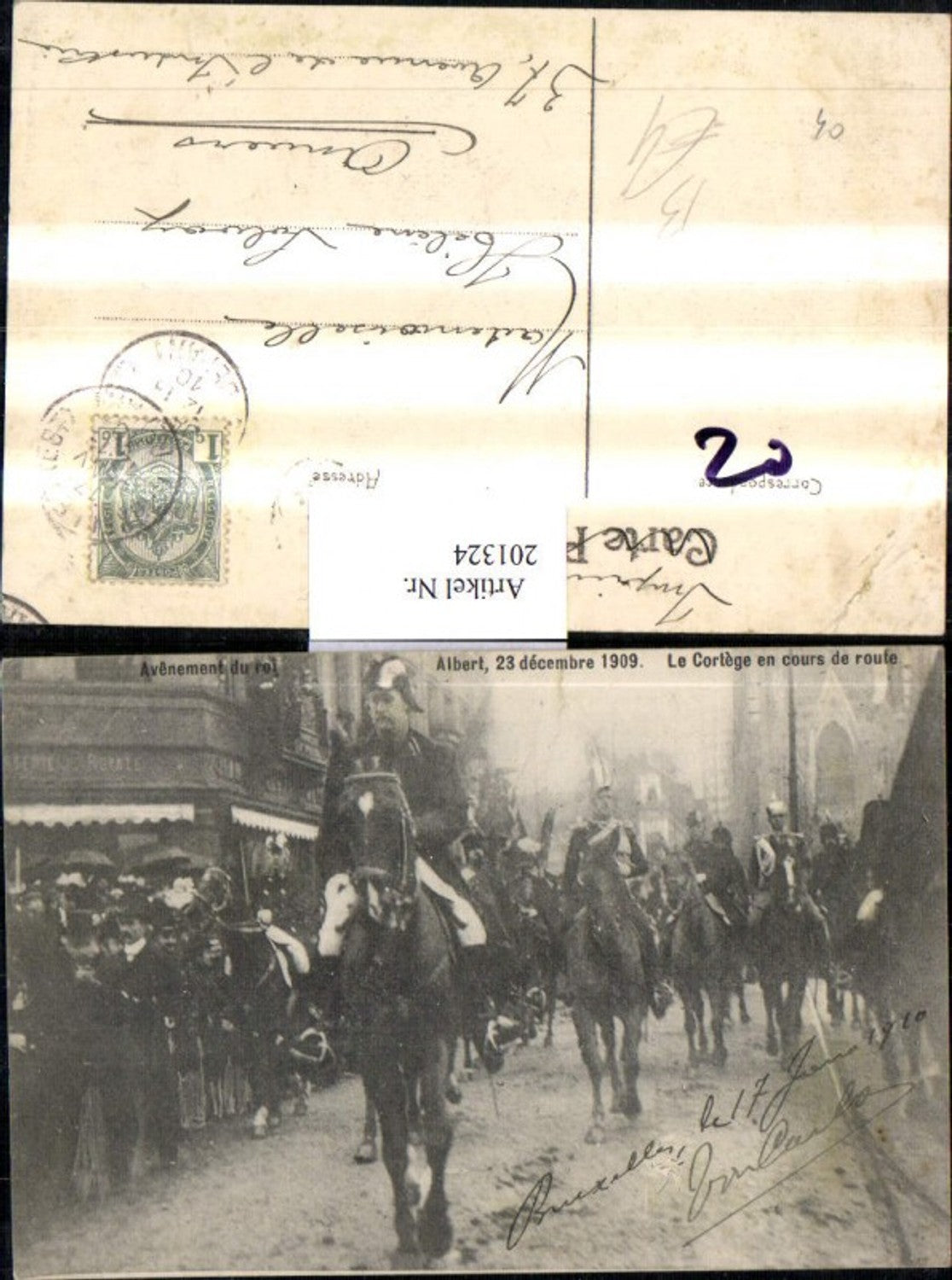 201324,Avenement du roi Albert 1909 Le Cortege en cours de roufe Pferde Frankreich