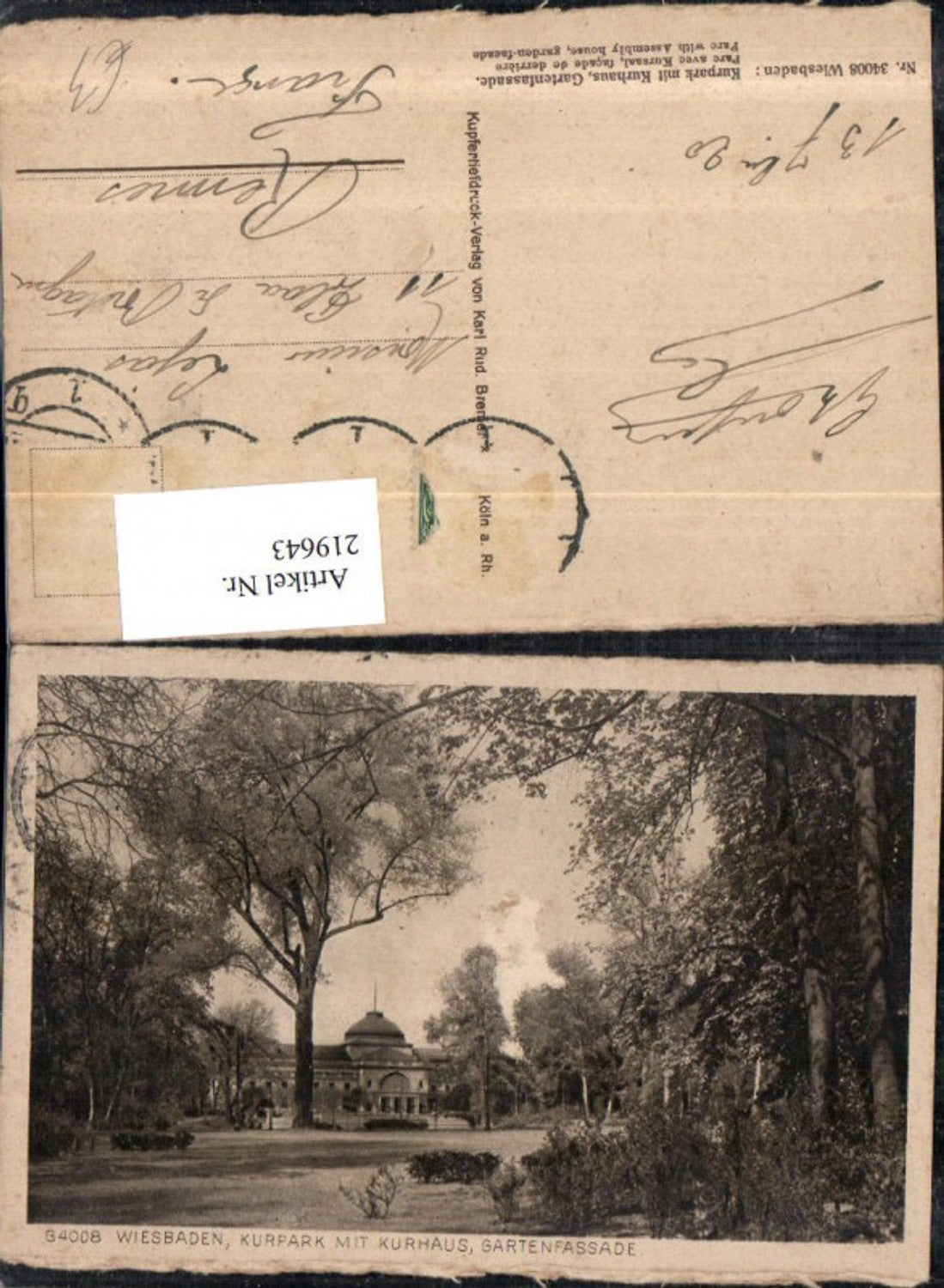 219643,Wiesbaden Kurpark m. Kurhaus Gartenfassade