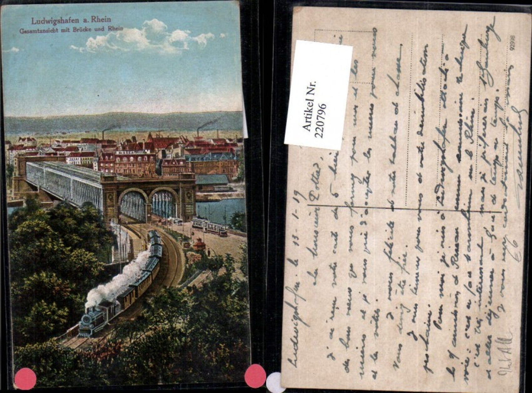 220796,Ludwigshafen a. Rhein Teilansicht m. Brücke u. Rhein Lokomotive