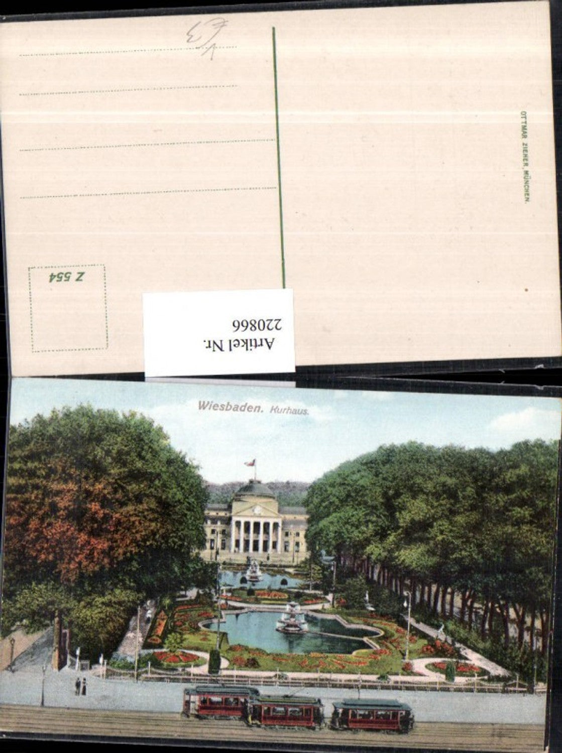 220866,Wiesbaden Kurhaus m. Park Garten Springbrunnen Straßenbahn pub Ottmar Zieher Z554
