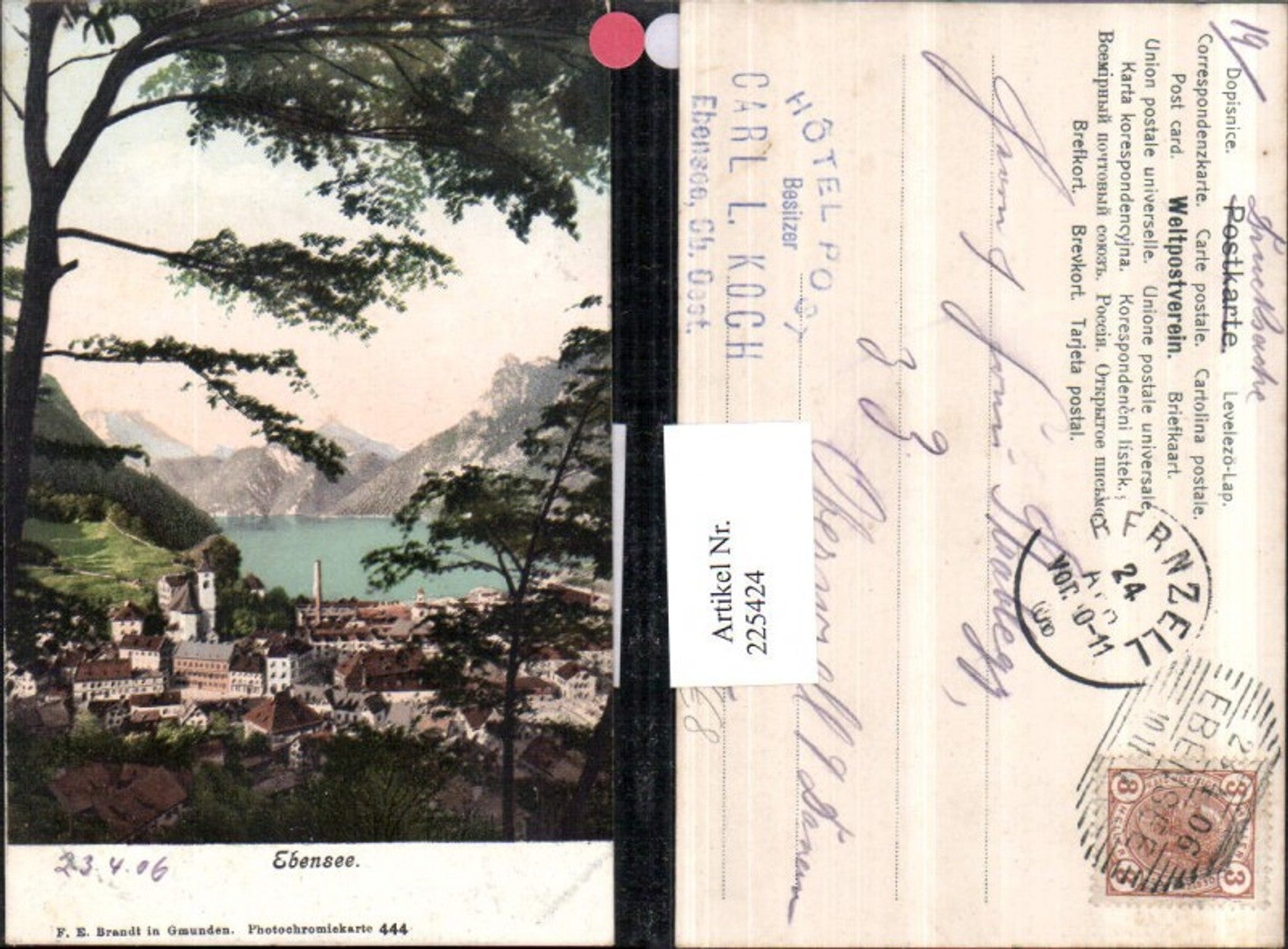 225424,Ebensee Teilansicht pub F. E. Brandt 444 Hotel Post Stempel Carl Koch