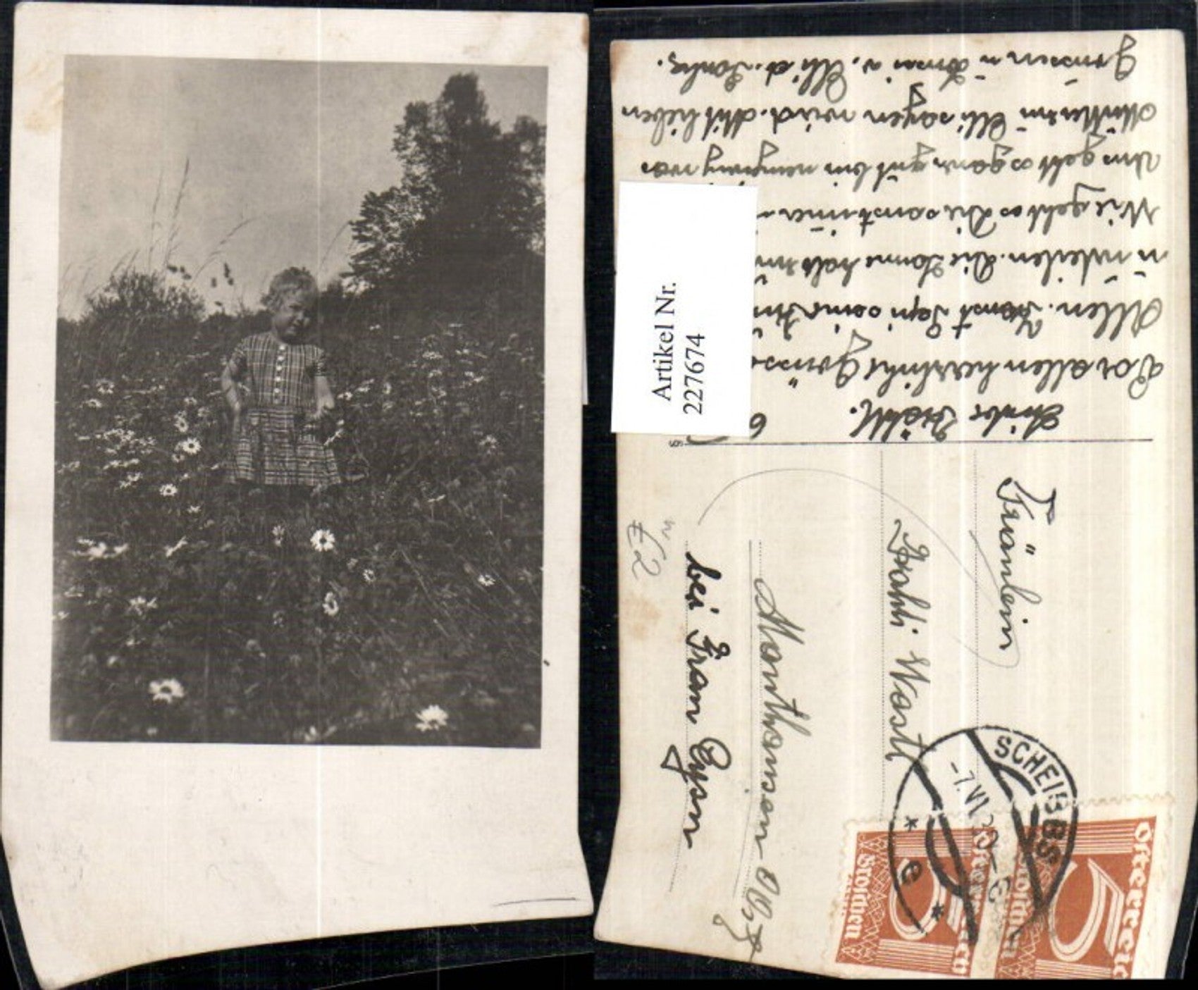 227674,Foto AK Scheibbs Mädchen m. Kleid Wiese Margeriten